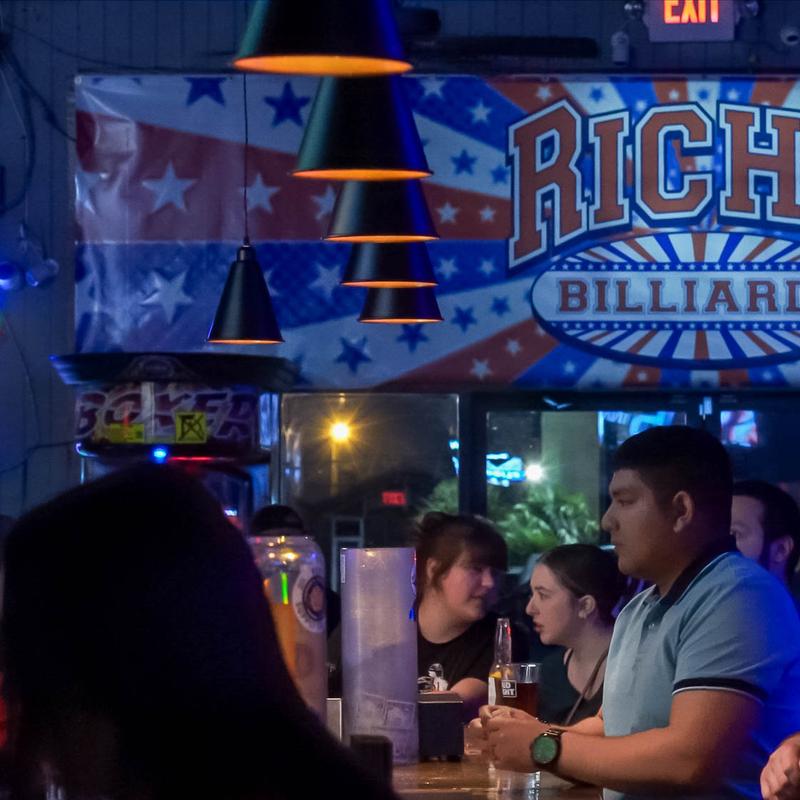 Rich’s Billiards offers 17 pool tables, every UFC event, full bar, restaurant, happy hour specials, and live music on one of the biggest and best indoor stages in South Texas. Rich’s Billiards enforces a no gang related clothing policy (as is posted on the door).